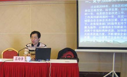 會(huì)長(zhǎng)虞培清正在作2006年聯(lián)合會(huì)工作報(bào)告